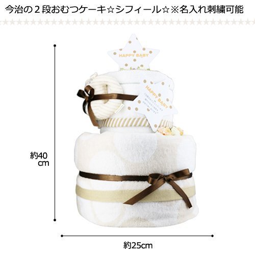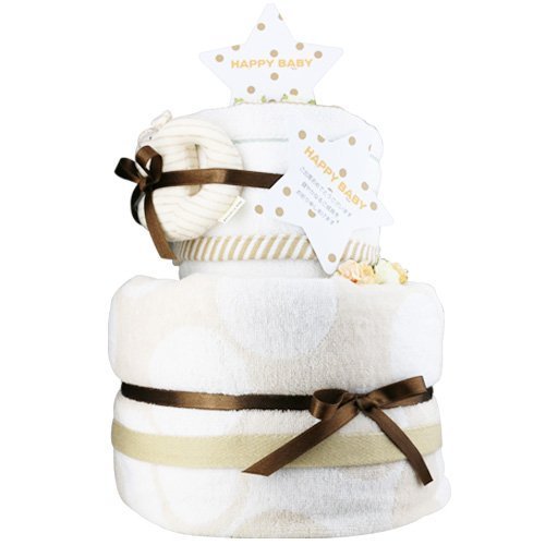 今治 おむつケーキ シフィール ( ベージュ ) 今治ウォッシュタオル 今治バスタオル 付 にゃんこ(ブラウン) パンパースSサイズ [ 出産祝い ] 日本製