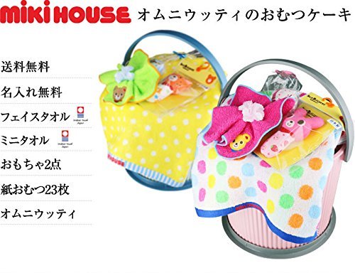 出産祝い 豪華 オムニウッティS ミキハウス おむつケーキ パンパーステープタイプSサイズ 女の子への贈り物 フェイスタオル ミニタオル おもちゃ 手作り mikihouse ベビー 出産祝いギフト 出産祝 今治タオル (オムニウッティ ピンク)