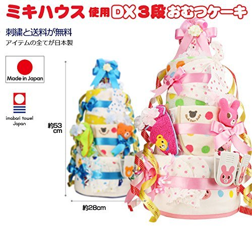 mikihouse(ミキハウス) 使用 出産祝い 日本製 超豪華DX3段 おむつケーキ 今治タオル imabari towel (メリーズテープタイプMサイズ, 男の子向け(ブルー系))