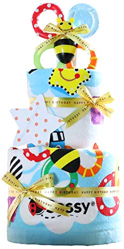 Sassy サッシー 出産祝い 身長計付き バスタオル 豪華2段 おむつケーキ パンパース テープタイプ M 手作り 女の子 男の子 男女兼用