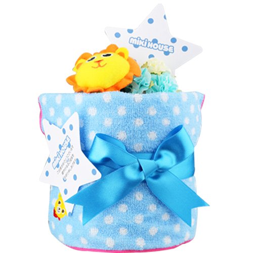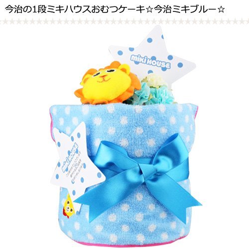 ミキハウス 今治タオル 1段 おむつケーキ 今治ミキブルー ( 水色 ) mikihouse サッシー チャームバンド 付 パンパースS (ご持参用手提げ袋付) [ 出産祝い ]