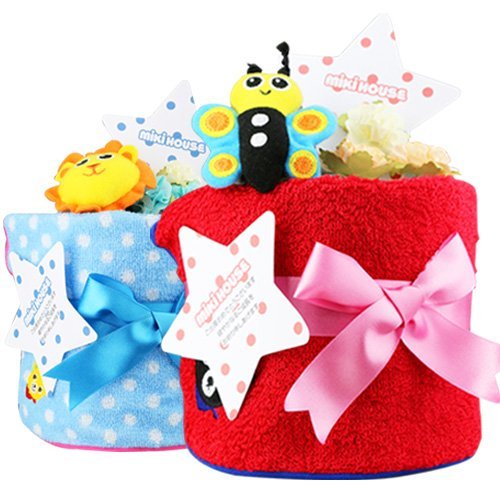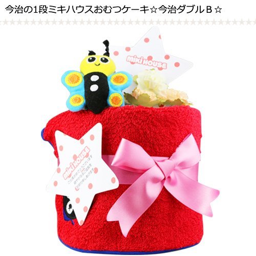 ミキハウス 今治タオル 1段 おむつケーキ 今治ダブルB ( 赤 ) mikihouse サッシー チャームバンド 付 パンパースL [ 出産祝い ]