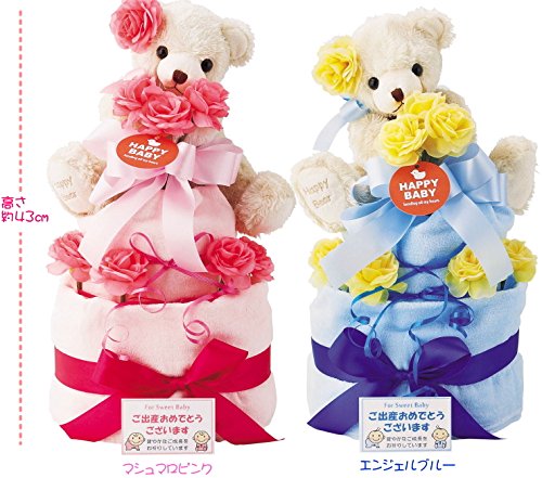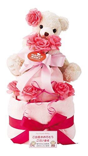 オムツケーキとは、紙おむつを丸め、リボンやベビーグッズで美しく飾りつけ、デコレーションケーキに見たててプレゼントするという、可愛いくて、開けてびっくりなギフトです。 肌ざわりの良いふんわりタオルで、オムツをくるんでいます。 おめかしをしたキュートなクマさんが、ケーキの上にちょこんとお座り。ほのぼのとした表情にほっと癒されそうです。ケーキを使ったあとはお部屋に飾ってもOK。 ご注文をいただいてからの製作になりますので、少しゆとりを持ってのご注文をお願いします。装飾用のリボン等は画像と変更になる場合がございます。 ※表示価格は税別となりますので、消費税が別途課税されます。 ※メーカー都合により、デザイン・内容等が変更になる場合がございます。