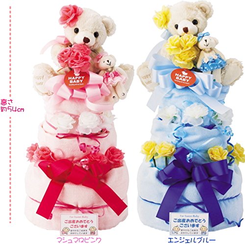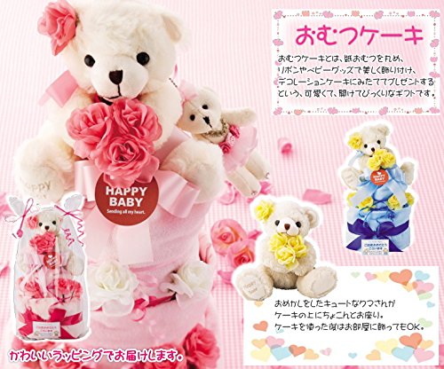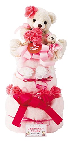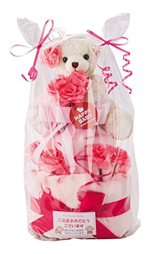 オムツケーキとは、紙おむつを丸め、リボンやベビーグッズで美しく飾りつけ、デコレーションケーキに見たててプレゼントするという、可愛いくて、開けてびっくりなギフトです。 肌ざわりの良いふんわりタオルで、オムツをくるんでいます。 おめかしをしたキュートなクマさんが、ケーキの上にちょこんとお座り。ほのぼのとした表情にほっと癒されそうです。ケーキを使ったあとはお部屋に飾ってもOK。 キーチェーン、ストラップ付 ご注文をいただいてからの製作になりますので、少しゆとりを持ってのご注文をお願いします。装飾用のリボン等は画像と変更になる場合がございます。 ※表示価格は税別となりますので、消費税が別途課税されます。 ※メーカー都合により、デザイン・内容等が変更になる場合がございます。
