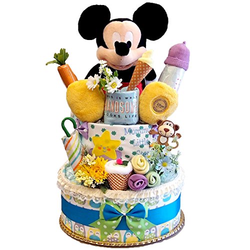 出産祝いに大好評 ディズニー おむつケーキ 2/3段と比べて大きめミッキー マウス 誕生プレゼント 内祝い 男の子 パンパース(M) 54枚