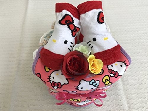おむつケーキ女の子用 ハローキティーのプチサイズおむつケーキです。 直送以外の方には全て紙袋をお付けしております。
