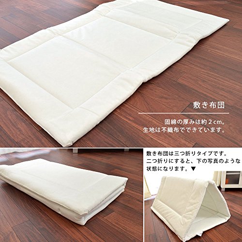 - ■組成:【掛布団・枕】側生地・中わた ポリエステル100% 【敷布団】側生地 ポリプロピレン100%、中わた ポリエステル100% 【掛カバー・敷カバー・枕カバー】ポリエステル100% 【バッグ】表側・中綿・裏側 ポリエステル100%