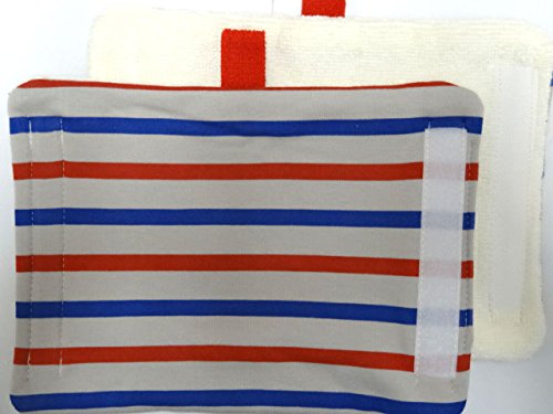- 表地綿ニット(Tシャツの生地)、裏地タオル(バスタオル生地) のリバーシブルになっています。