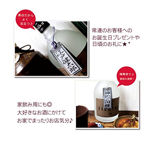 - 行きつけのお店で目立つのもよし!家飲みでお気に入りのボトルにつけるのもよし!どんなボトルとも相性バツグンのアクリルボトルタグです。