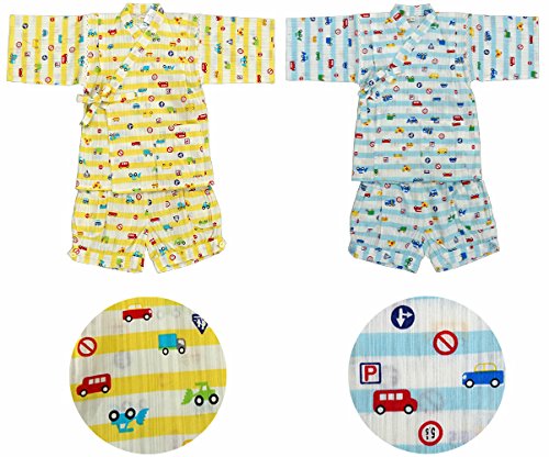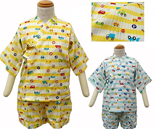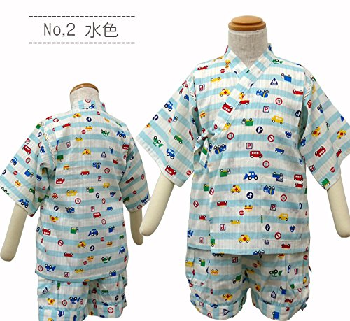 子供甚平 綿素材 車:標識 (90㎝, 水色)