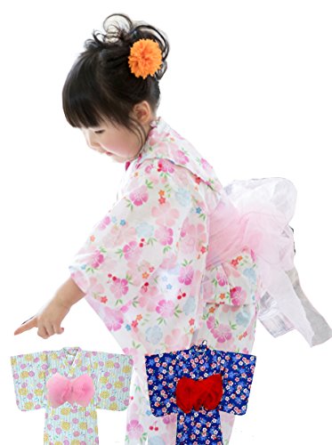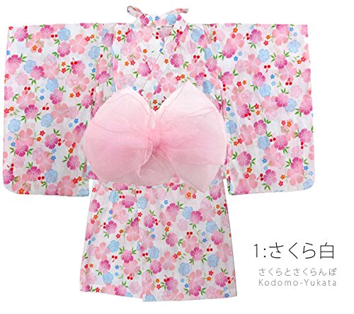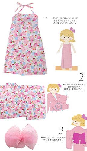 子供浴衣 サンドレス 3点セット 100-130cm (130㎝, 1:さくら白色)