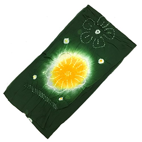 きものShop衿子 合繊絞り子ども用兵児帯 No.821 深緑 黄色 3m 日本製