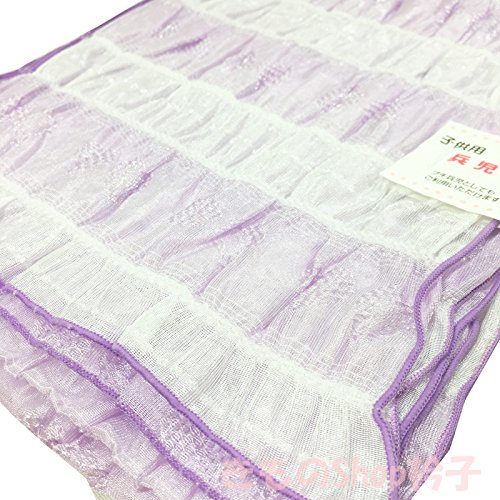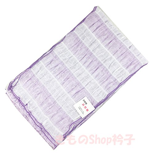 きものShop衿子 子供用兵児帯 No.604 薄紫 シャーリング入り ボーダー ハート柄