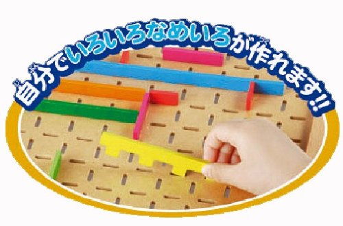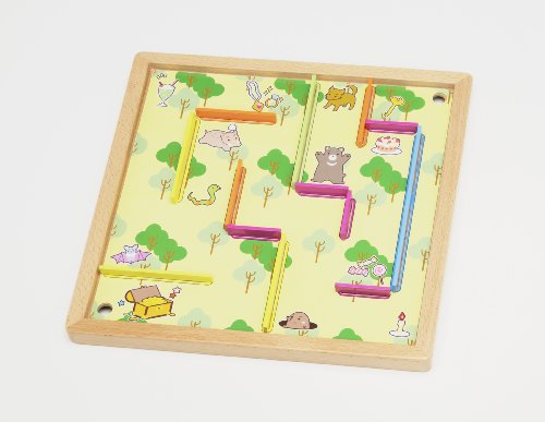 [商品の特長]ボードに仕切り板(ピース)を自由にはめて、ボールがころがるコースをつくって遊びます。考えながらめいろを作ることで、創造性を高めます。[詳しい仕様]ピースは、長さごとに色の違う8種類が付属しています。[遊びかた・使いかた]・はじめは大きいガイドシートを使って、シートに沿ってピースを挿すだけでめいろができます。・次に小さいガイドシートを組み合わせてめいろを作ったり、空いたスペースに自由にめいろを作ったりすることで、徐々にめいろ作りに慣れてきます。・最後はガイドシートを使わずに自由にめいろを作ります。 穴の位置や使うピースを考えながら試行錯誤を繰り返してめいろを 完成させます。