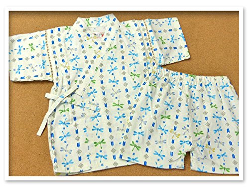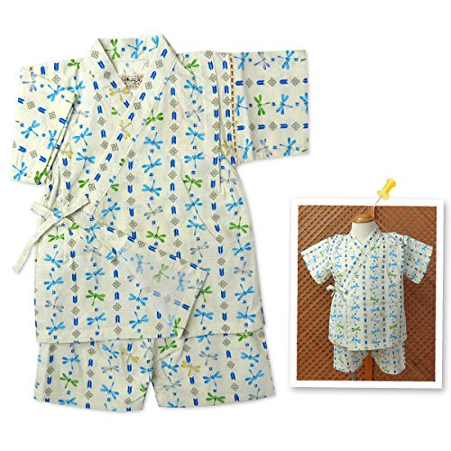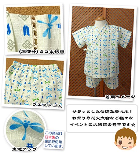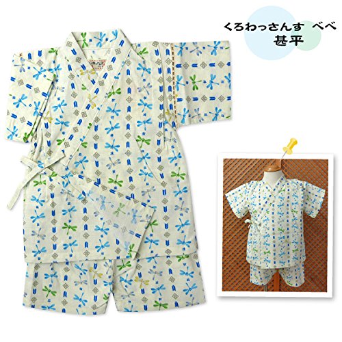 ベビー服 男の子 甚平 くろわっさんすべべ トンボ柄 生地日本製 綿100% タコ糸切替 上下組セット 男児 ベビー (アイボリー/95cm)