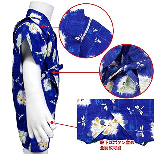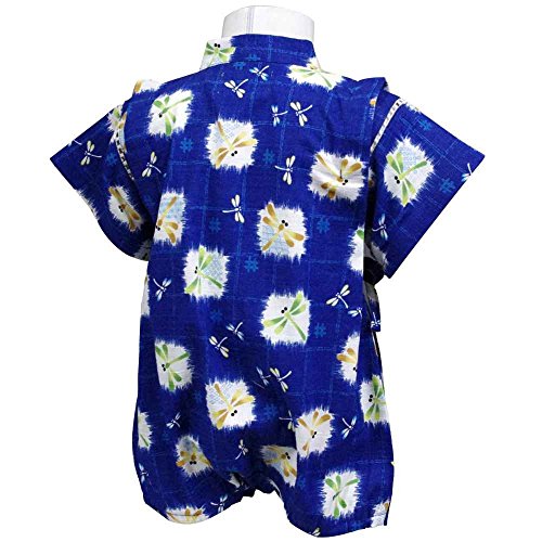 カラー : ネイビー / ボーイズベビーとんぼ柄甚平ロンパースタイプ(日本製生地使用、中国縫製) / ・ 赤ちゃんのお肌に優しい綿100%の日本製生地使用 / ・ とんぼ柄のロンパースタイプの甚平 / ・ 肩口は千鳥掛けで涼しい / ・ 上着は内掛け、外掛け紐でカンタン着用 / ・ 股下はスナップボタン留めで、着脱やオムツ替えが簡単! / ・ お祭りや花火大会だけではなく、普段着やパジャマとしても大活躍! / 綿 100%(日本製生地)