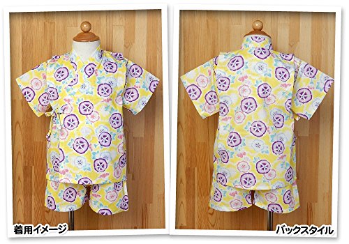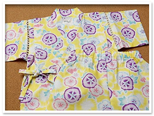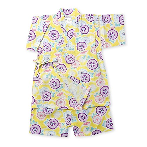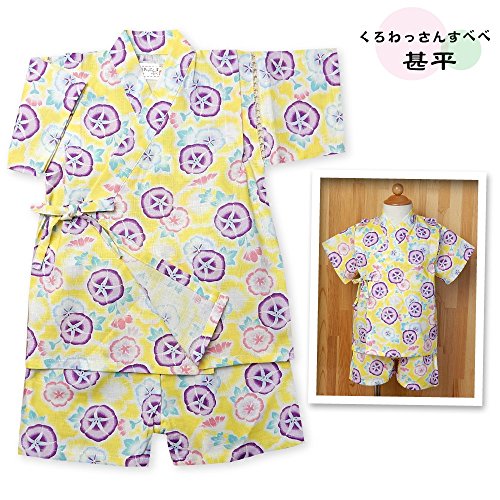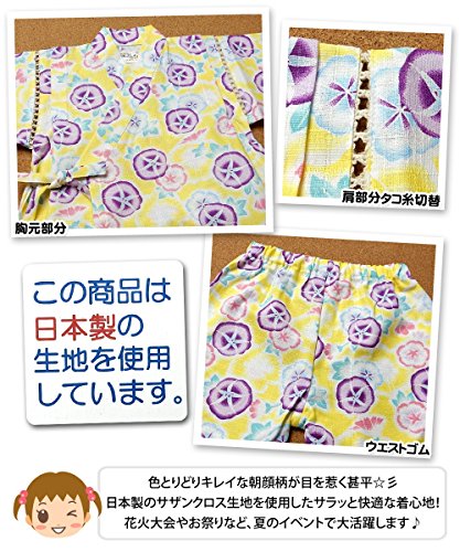 (イエロー/90cm)ベビー服 女の子 甚平 くろわっさんすべべ 朝顔柄 タコ糸切替 日本製生地 サザンクロス 綿100% 上下組セット 女児 ベビー