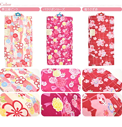 (ここち) 訳あり 女の子 浴衣 5-6才 110cm 桜うさぎ赤