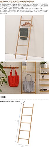 [特徴]:壁に立て掛けるだけで簡単に設置できるのが嬉しい、はしご型の収納ラダーラックです。ラックを置けないような場所にも省スペースで収納場所を作ることができるので、玄関やランドリースペースなど狭い場所でも活躍。タオルや本をかけたり、ストールやコートをなどをさっとかけるのに重宝します。