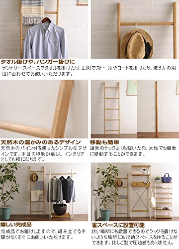- [特徴]壁に立て掛けるだけで簡単に設置できるのが嬉しい、はしご型の収納ラダーラックです。ラックを置けないような場所にも省スペースで収納場所を作ることができるので、玄関やランドリースペースなど狭い場所でも活躍。タオルや本をかけたり、ストールやコートをなどをさっとかけるのに重宝します。 はしご型なので圧迫感がなく、無造作にものをかけてもインテリアとしても様になります。シンプルなデザインですので、使う方に合わせて場所を選ばずいろいろなところでお使いいただけます。 ■仕様 ・ランドリースペースでタオルを掛けたり、玄関でストールやコートを掛けたり。使う方の用途に合わせてお使いいただけます。 ・天然木のパイン材を使ったシンプルなデザインです。木目の印象が優しく、インテリアとしても様になります。 ・狭い場所にも設置できるので、ラックを置けないような場所にも収納スペースを作ることができます。はしご型で圧迫感もありません。 ・通常のラックよりも軽いため、女性でも簡単に移動することができます。 ・完成品でお届けしますので、組み立てる手間がなくすぐにお使いいただけます。