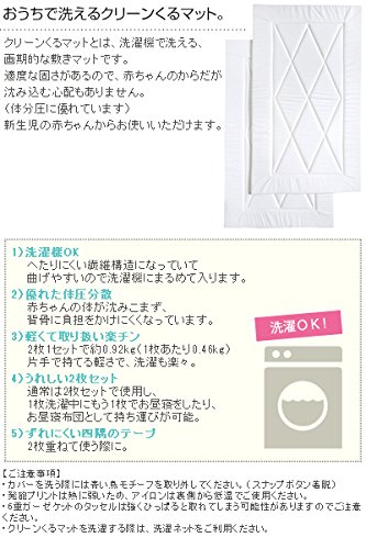 薄手で曲げやすいマットは洗濯機で丸洗いが可能。通常は2枚を重ね、お昼寝時には1枚使いでもう1枚を洗濯することができて便利。お出かけ時のポータブル布団としてもお使いいただけます。