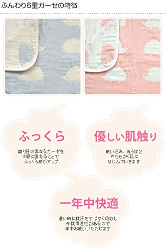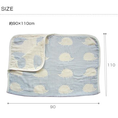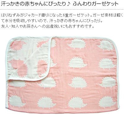 はりねずみがジャカード織りになった6重ガーゼケット。ガーゼ素材は軽くて水分を吸収しやすいので、汗っかきの赤ちゃんにぴったり。友人・知人やお孫さんへの出産祝いにもおすすめです。
