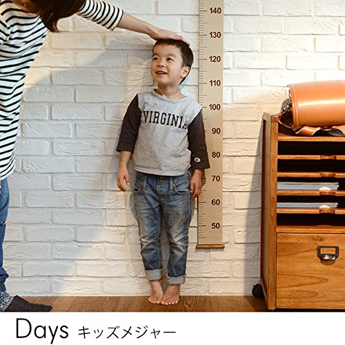 [特徴]:木の温もりを感じるブナ材と、ナチュラルな雰囲気の帆布素材でできたキッズメジャーです。