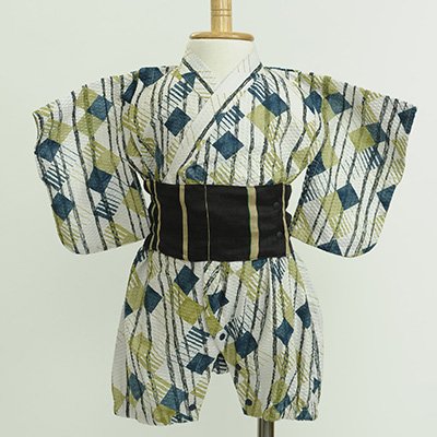 OCEAN&GROUND オーシャンアンドグラウンド 甚平ロンパース 帯付き ワガラ×グリーン 80cm