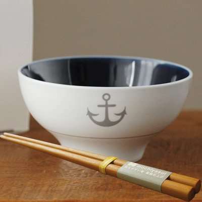 持ちやすい箸:天然竹 - ノコサナイ茶碗:ネイビー、ブルー、ピンク、グリーン、グレー