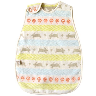 フランス語でうさぎを意味する単語が由来の「ラパン ラパン」シリーズの綿毛布スリーパー。きのこを追いかけるうさぎをかわいらしい色合いで表現。