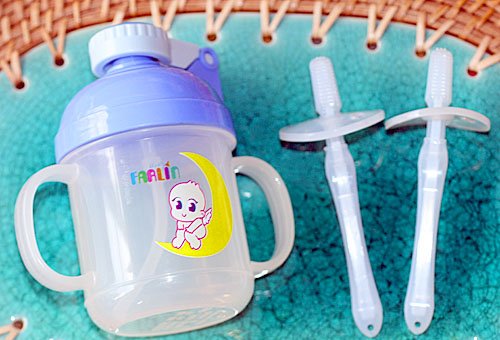 トレーニング用品 【水筒】 歯ぶらし ポップアップ ストロートレーニングカップ/ シリコン歯ぶらし2本組み ピンク 便利なディリーグッズセット
