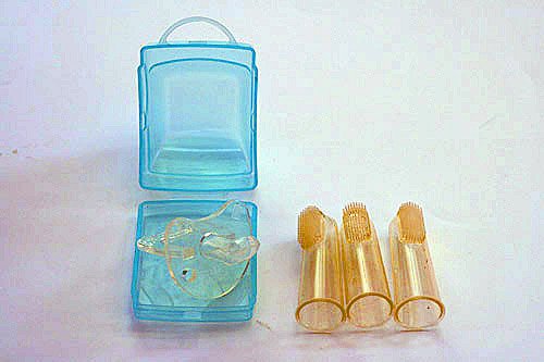 歯ブラシ おしゃぶり ベビーソフト歯ブラシ3個セット/ シリコンおしゃぶりカーケース入り プルー オーラルケアギフトセット2種類組み