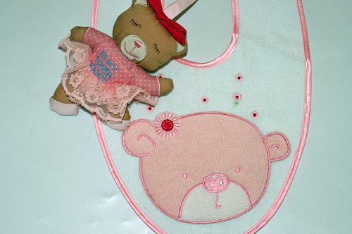 ✿ピンクベア柄のビブです。