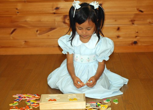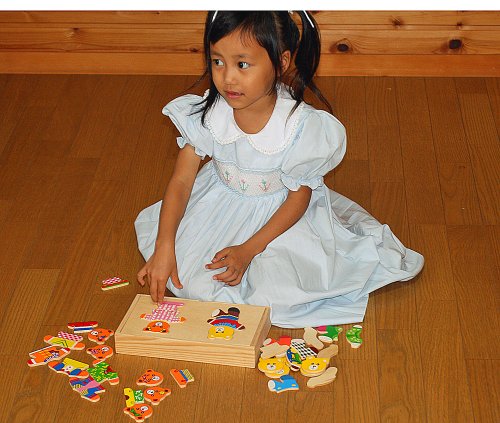 木のおもちゃ 木のパズル 木のバズルボックス入り 着せかえパズル ベアボーイ/ガール 知育