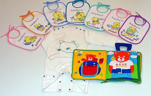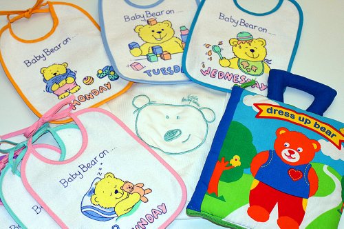ベビー洋品 スタイ 布絵本 ロンパース リトルベビーベア12M/ ウィークリービブ ベビーベア7枚 dress up bear Book くまちゃんギフト3点セツト 知育
