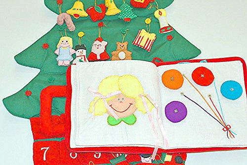 布絵本 布のアドベント カレンダー/ 壁掛け クリスマスツリー ボタンかけオーナメント24個付き/ MY QUIET BOOK マイクワイエットブック バルーン メリークリスマス ギフトセット 2点組み知育