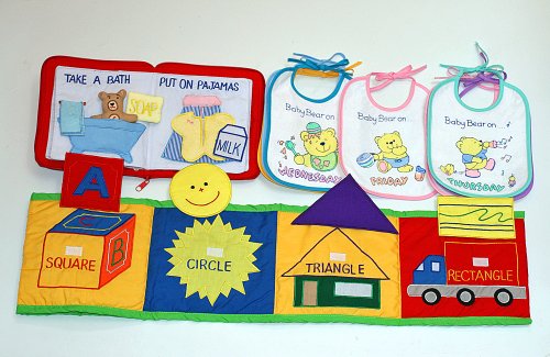 ♪MY LITTLE BEDTIME BOOK New!英語刺しゅう版 ♪ベビーベアのベッドタイムの生活習慣を ♪マスコットとパーツ類を使用して学ぶ ♪英語版刺しゅう布絵本です!! ♪全8ページ ◎対象年齢:3歳以上 ◎素材:ポリエステル・綿・中綿(ポリエステル) ◎サイズ:18x3x17cm ◎仕様:3方ファスナー開閉 ♪COLORS&SHAPES BOOK New!英語刺しゅう版!! ♪New Colors Shapes book!! ♪基本の色とかたちをカラフルな刺しゅう入りの ♪マスコットとパーツ類を使用して学ぶ ♪英語のアコーディオンブックです!! ♪全10ページ ◎対象年齢:2歳以上 ◎素材:ポリエステル・綿・中綿(ポリエステル) ◎サイズ:20x5x20cm ◎内容1:COLORS/りんご→RED あひる→YELLOW かめ→GREEN くじら→BLUE ◎内容2:SHAPES/ブロックA→SQUARE 太陽→CIRCLE 屋根→TRIANGLE トラック→RECTANGLE ♪うれしいおまけは人気のウィークリービブセット!! ✿✿絵本のようなビブで ✿✿お話が広がります。 ✿✿ひも結びタイプなので ✿✿サイズも調整できます。 ✿✿一枚づつ異なる絵柄が楽しめます。 ◎年令:0ヵ月~1歳6ヵ月 ◎サイズ:23x18cm ◎素材: 綿100% 裏地 PVC ♪♪ご出産の御祝に!! ♪♪ハーフバースディのプレゼントとして!! ♪♪満1歳のお誕生日に!!