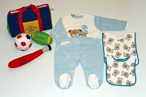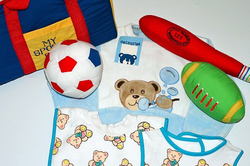 布おもちゃ 洋品 スタイ マイスポーツバッグ/ カバーオール シャボン玉ベア6M/ プルオーバーとベルクロビブ ベア柄 元気なお子様ギフトセツト 3種類組み 知育 (6M; 12M)