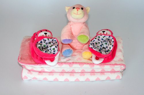 ご出産祝い ベビーロール・コレクション おめでとう ハッピーギフトセット 布のおもちゃ ブランケット ソフトぬいぐるみ ブーティ ビンクのハート