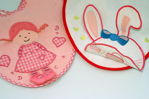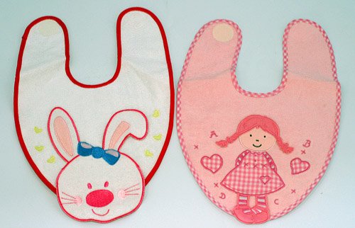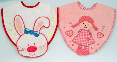 スタイ よだれかけ おしゃれなビブ ピンク女の子/ピンクバニーおしゃれなビブギフトセット 2枚組み