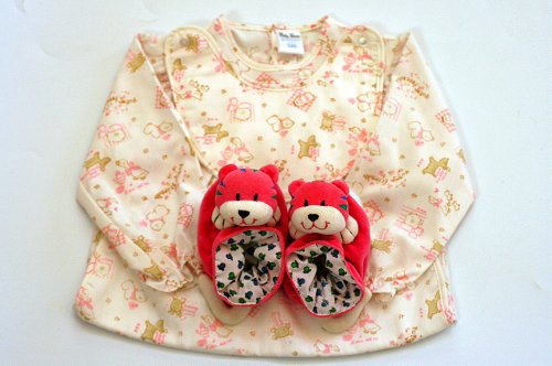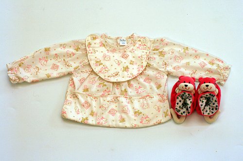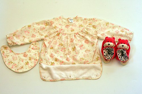 お食事エプロン えりママのスモックエプロン(ビブ付き) おしゃれなお食事エプロン/ ブーティ 長袖スモック ピンクー12M-24Mラトル入りアニマルシューズ 13CM えりママギフトセット 2種類組み. (24M(90CM))
