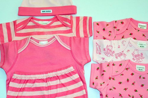 - おしゃれなボディ肌着ピンク柄のギフトセット