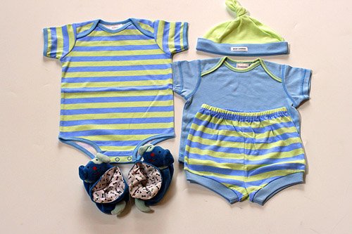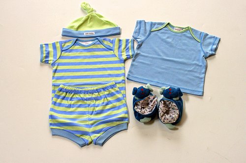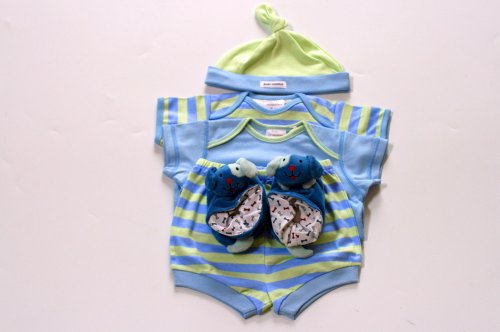 肌着/ブーティ インナー/ルームシューズ おしゃれなボディ肌着 ブルー/ ラトル入りパピィ ルームシューズ 5点セット