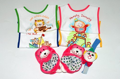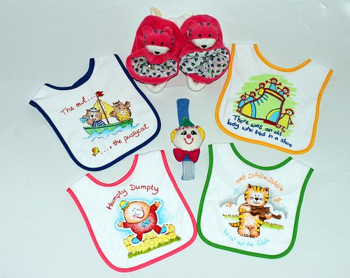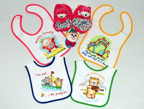 スタイ よだれかけ ブーティ ベビールームシューズ ベルクロビブ4枚セット/ラトル入りアニマルルームシューズ マザーグース柄/キトン ディリーギフト2個組みセット/リストラトルのおまけ付き