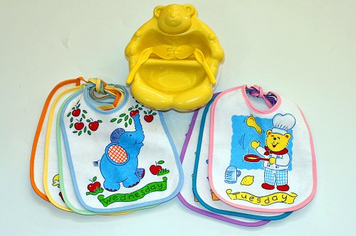 エプロン スタイ 食器 ウィークリービブ7枚セット/ くまのトレーニングプレートセット お食事タイムギフトセツト