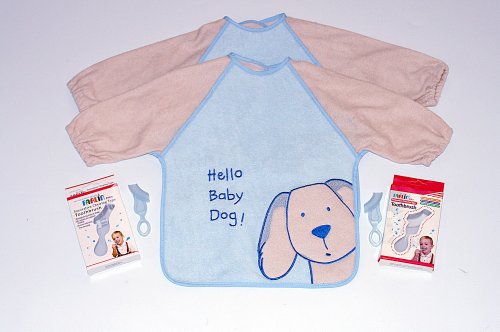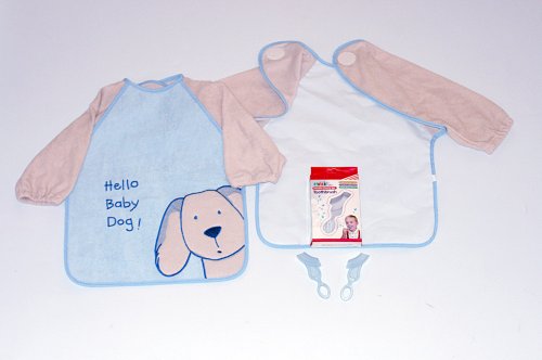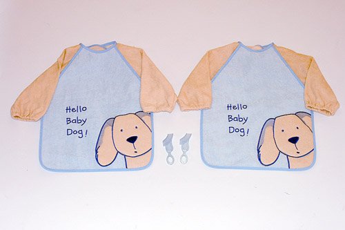 お食事エプロン 歯ブラシ 長袖お食事エプロン/ カミカミソフト歯ぶらし ドッグ 柄2枚/ブルーカミカミソフト歯ぶらし2個 ディリーセット