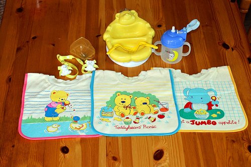 お食l事タイムセット ご出産祝い 食器/トレーニングカップ エプロン ベアズトレーニングプレイトセット ポップアップトレーニングカップ プルオーバービブ3枚セット カーケース 入りどうぶつホルダー2個 おまけ付き