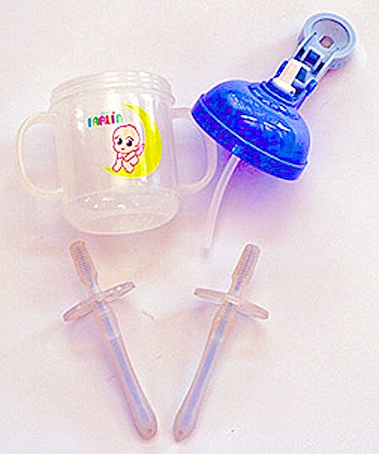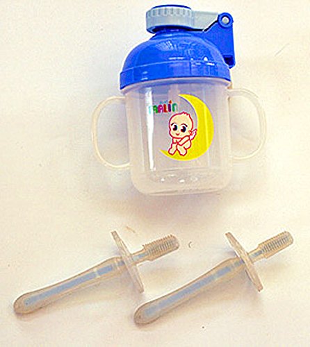 マグ トレーニング水筒 ベビー歯ぶらし ポップアップストロートレーニングカップ&シリコン歯ぶらし2本組みブルー 便利なディリーグッズセット