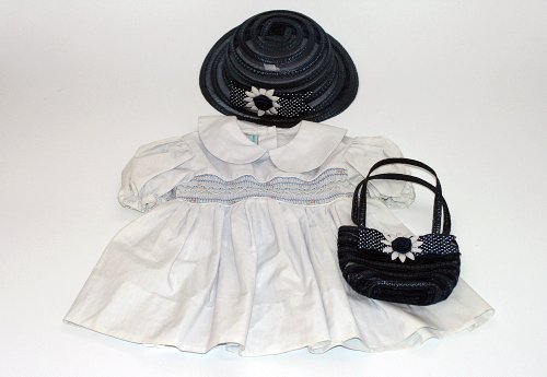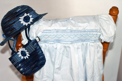 ドレス/帽子/バッグセットスモッキングドレス90ミッシエル/帽子/バッグセット50ブルー