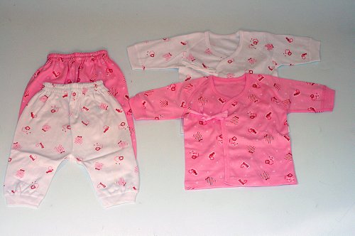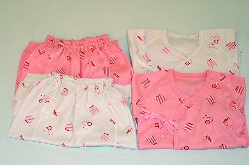 出産準備 肌着 短肌着/パンツセット ピンク/ホワイト 2着組み